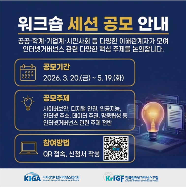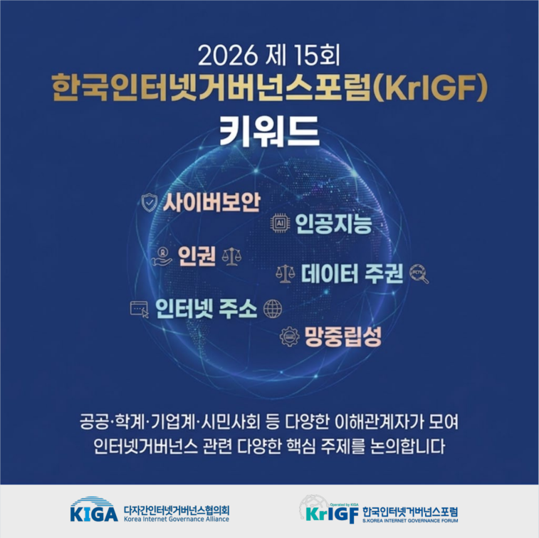 ▶ 2026 제 15회 한국인터넷거버넌스포럼(KrIGF) 워크숍 세션 공모◀